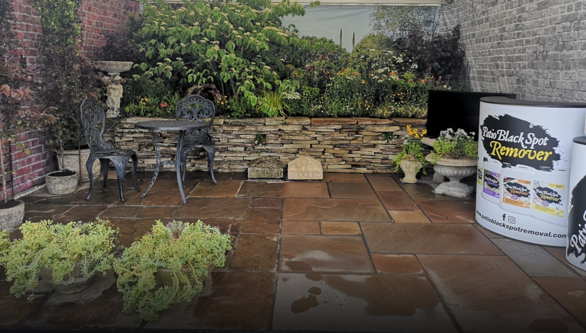 Months of preparation went into weathering the stones and slabs before we cleaned 50% of them to demonstrate the effect of The Patio Black Spot Removal Company's biodegradable and pet-friendly black lichen remover.